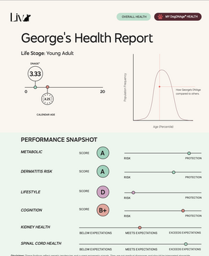 myDogDNAge uses a simple cheek swab to analyze key DNA markers and reveal your dog’s inner health story. The result? Clear, personalized guidance for you. myDogDNAge shows how you can adjust your dog’s diet, exercise, supplements, and veterinary care to better support their health and happiness at every stage of life.